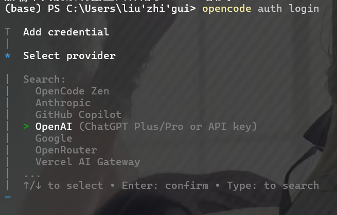 1 | opencode auth login |